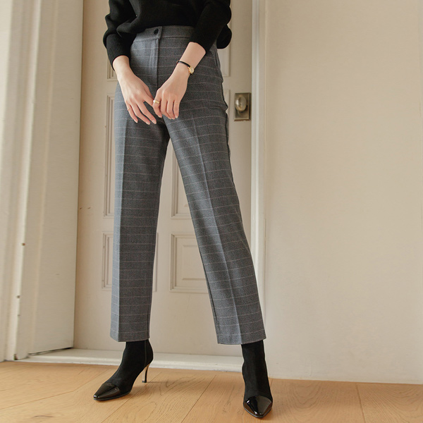 格伦格子呢 不间断 里面松紧带 弹力 宽松长裤(衬里加绒)