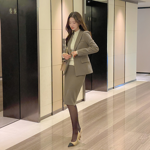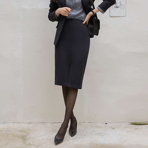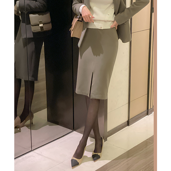 简单 开衩 中长 裙子(衬里加绒)