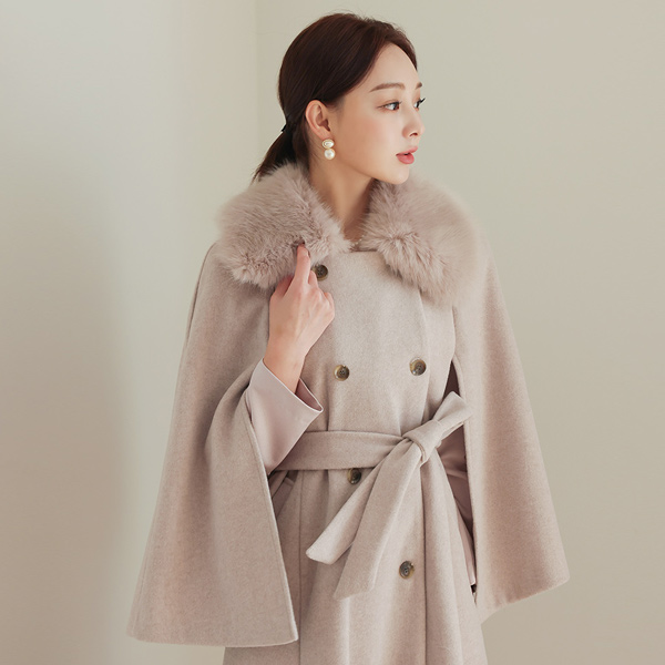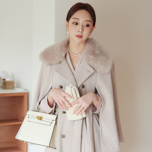 浪漫 双排扣 披肩 ECO-毛 大衣