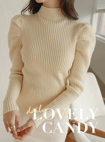 可爱 糖 泡泡袖 条绒 针织衫