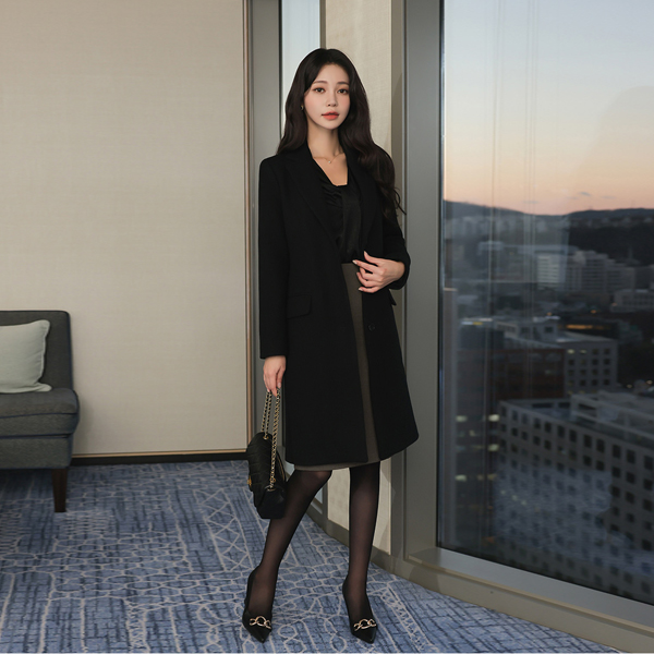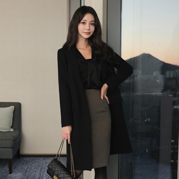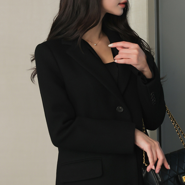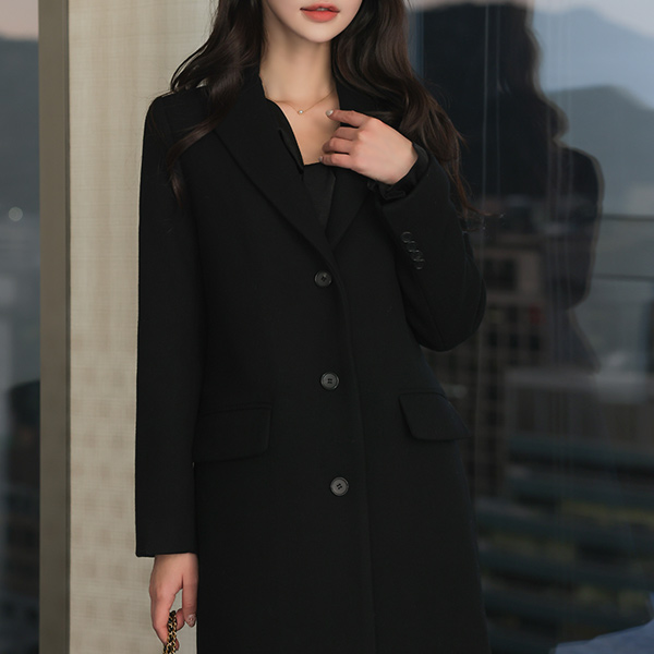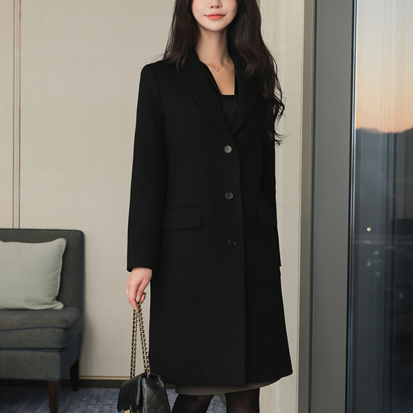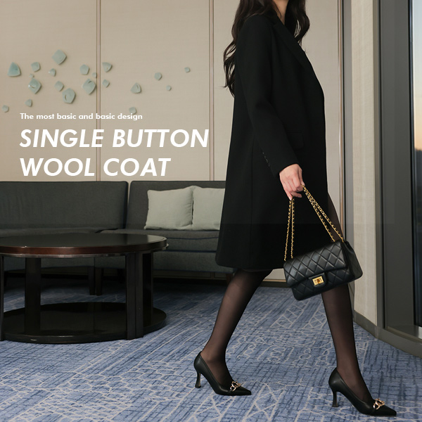 基本 线条 单排扣 羊毛 大衣