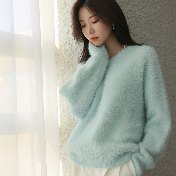 柔丝 颜色 V字领 貂皮毛 漂亮的版型 针织衫
