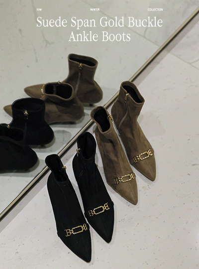 翻毛皮 弹力 黄金 带扣 短靴