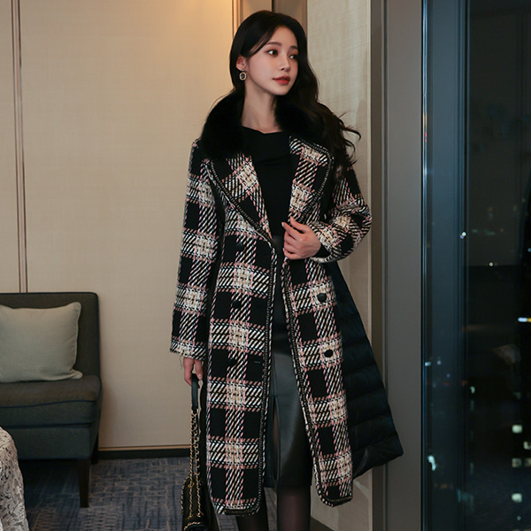 狐狸毛 人造皮夹 羽绒服 点缀 粗呢 古斯 大衣