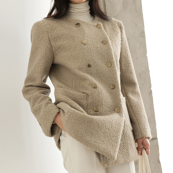 结子花式 哑光金色 双排扣 夹克(绗缝里料)