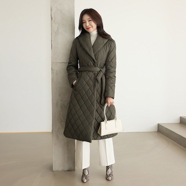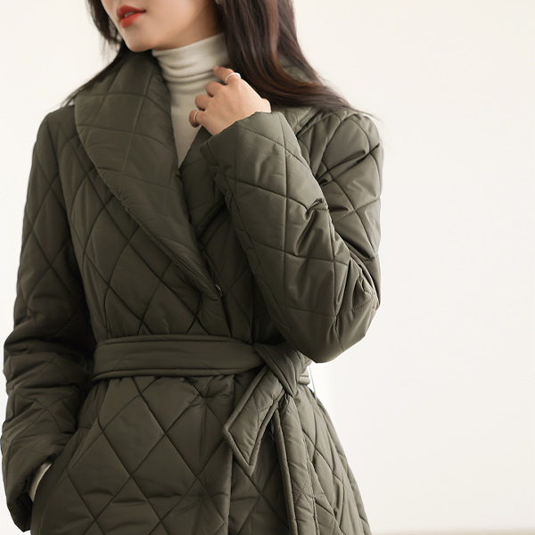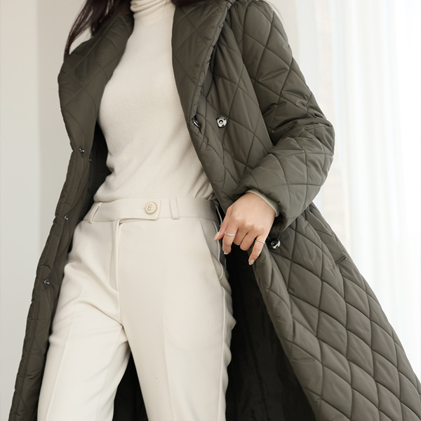 圆形 领子 隐藏 按扣 绗缝 长款羽绒服(4唡)