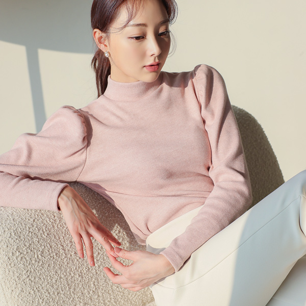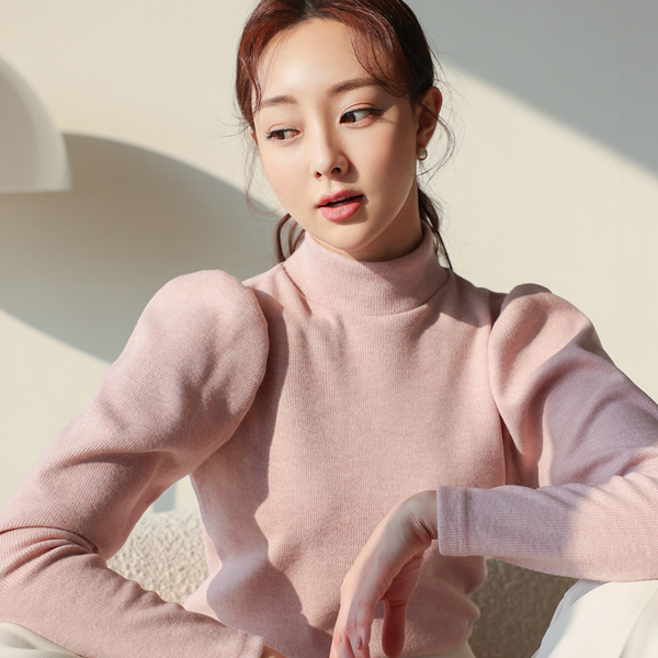泡泡袖 羊毛 半高领 针织t恤
