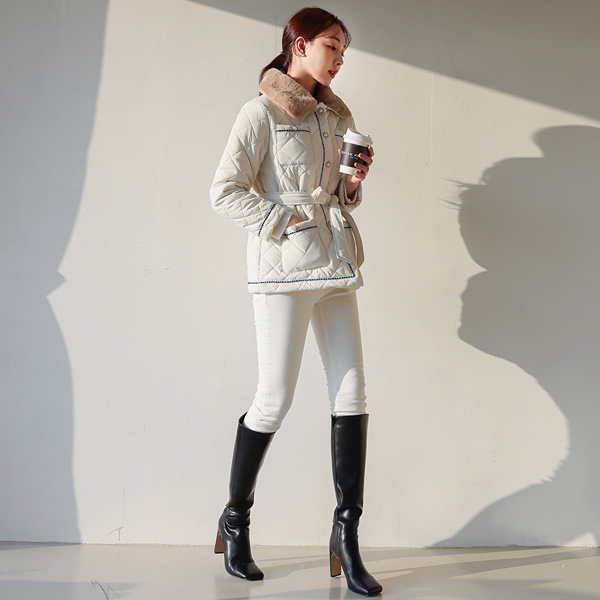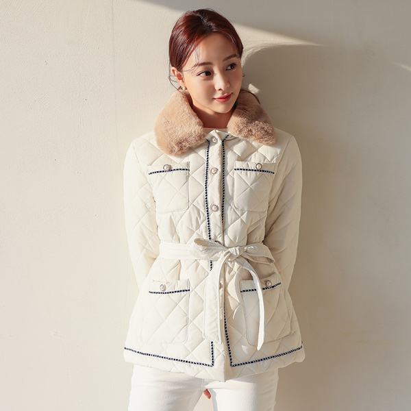 配色 领子 ECO-毛 绗缝 羽绒服