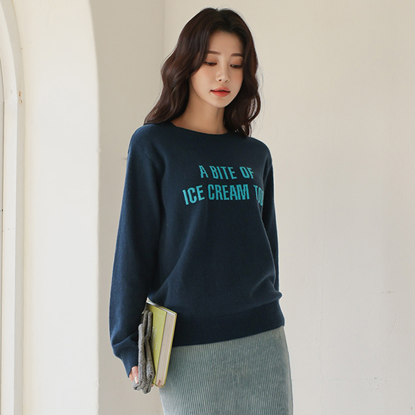 鲜明 ice cream 英文字母 羊毛 针织t恤
