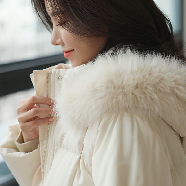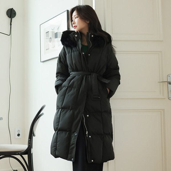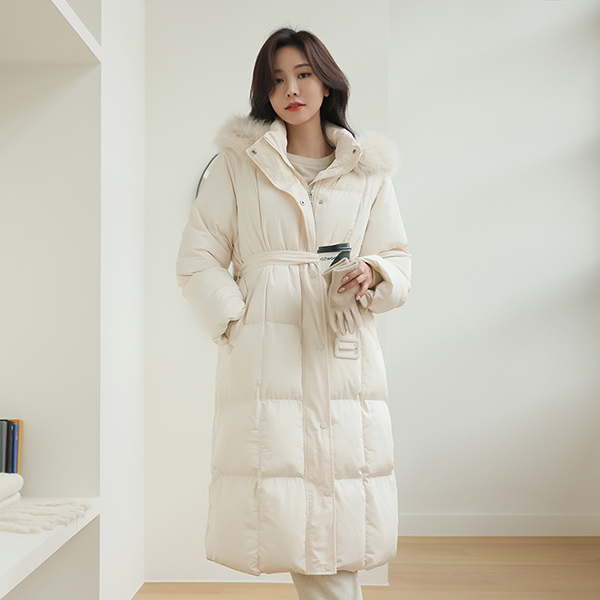 真狐狸皮毛 方形绗缝 冬季 超长 羽绒棉 长款羽绒服