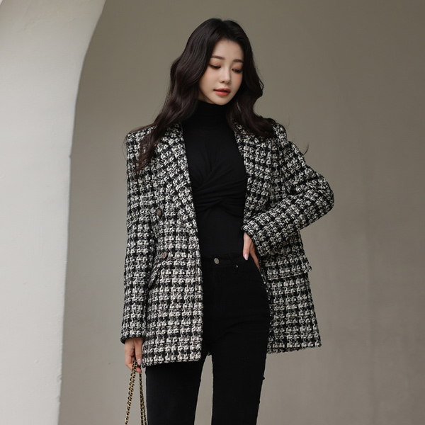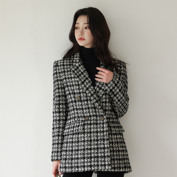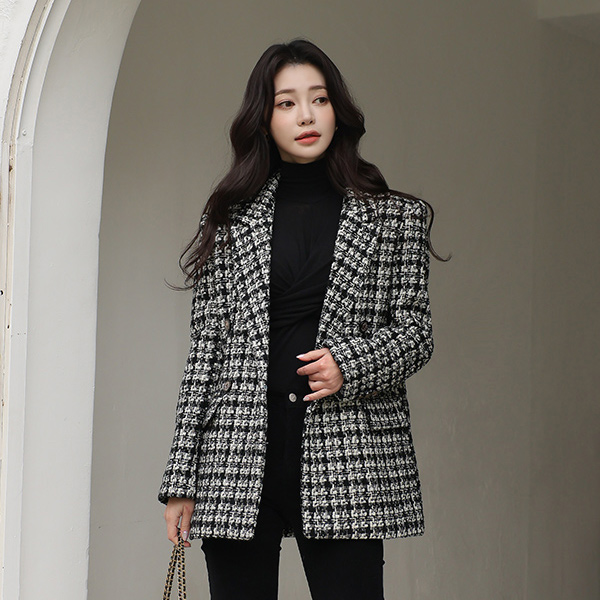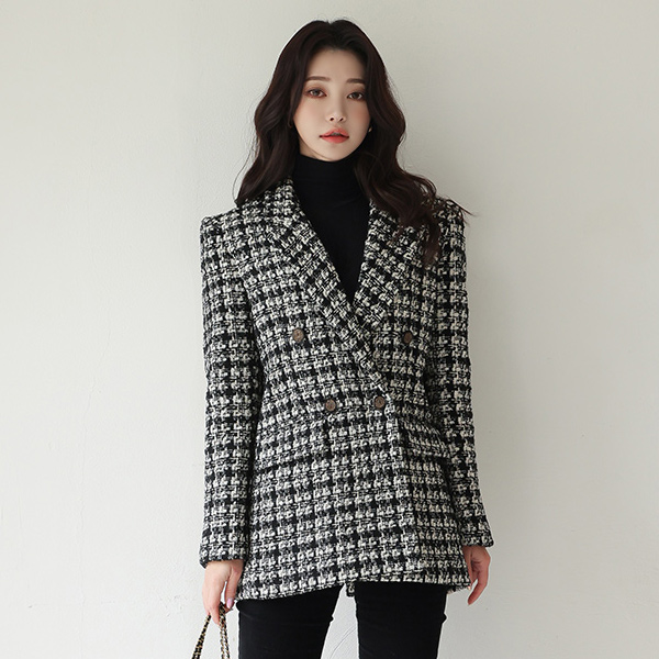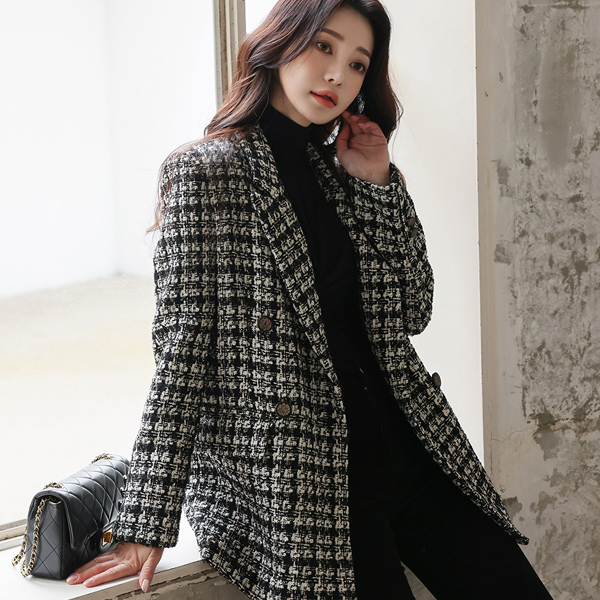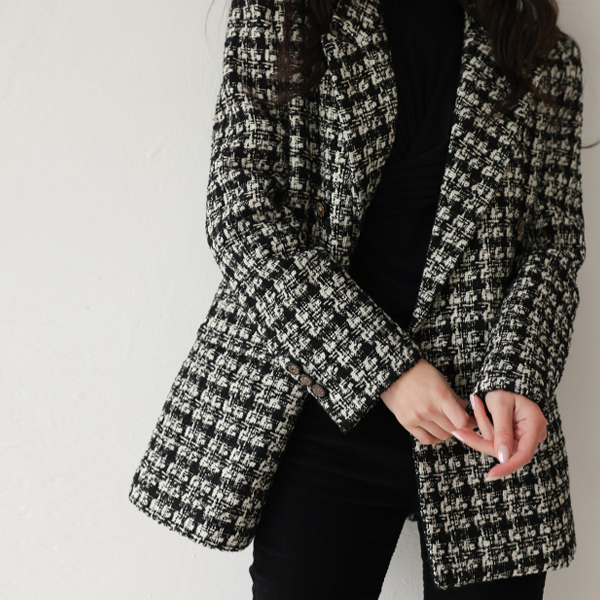 黄金 珍珠 粗呢 古董 扣子 羊毛夹克(绗缝里料)
