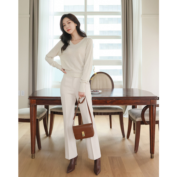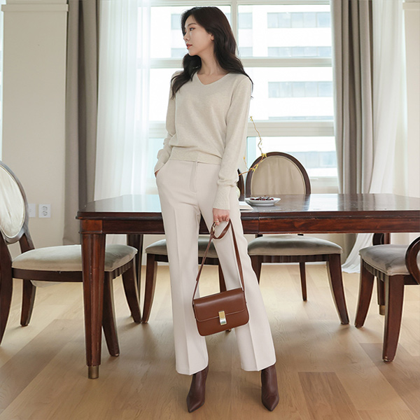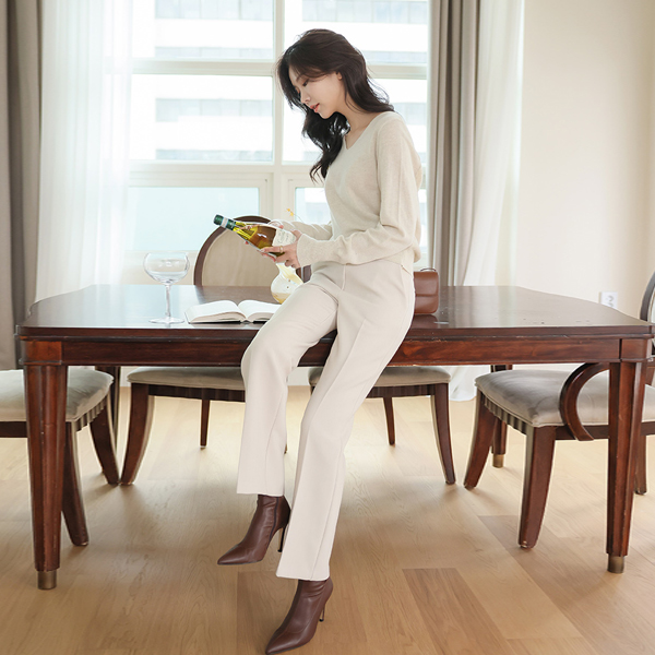 温和 拉绒 内衬 斯利姆 一字型 宽松长裤