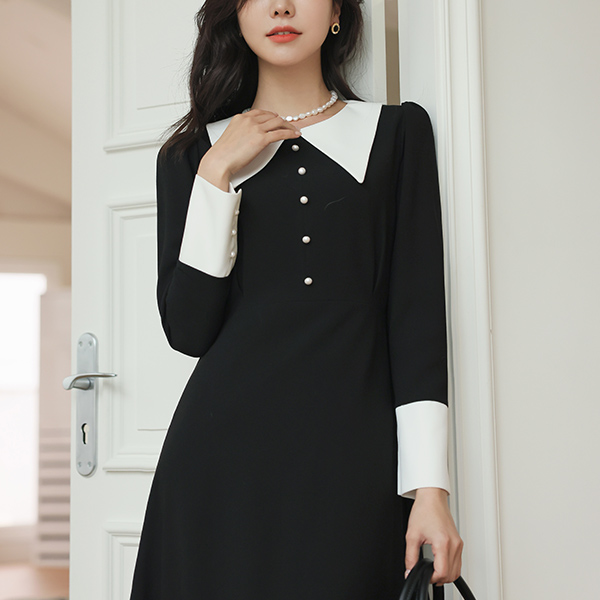 古典 珍珠 点缀 ODE 喇叭 连衣裙