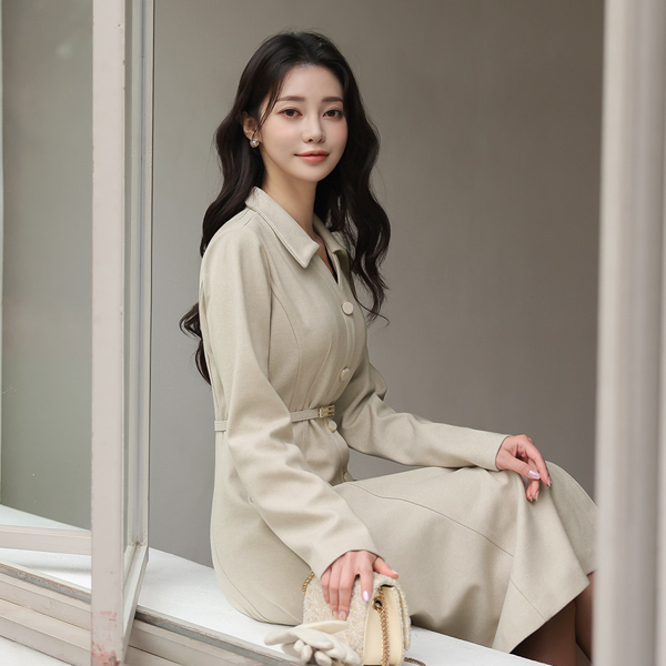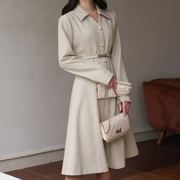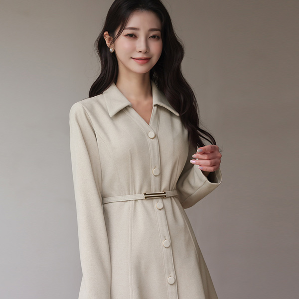 Peach 拉绒 衬衫 领子 喇叭 连衣裙(衬里加绒)