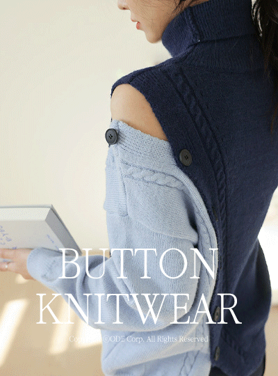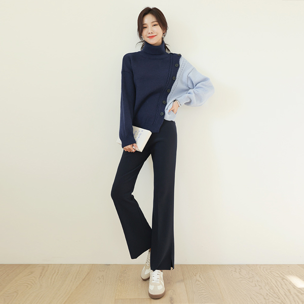 时尚 斜线纽扣 配色颜色 宽松 高领 针织衫