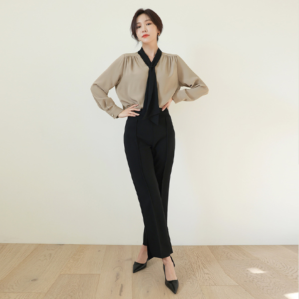 彩色领带 褶皱露肩 罩衫