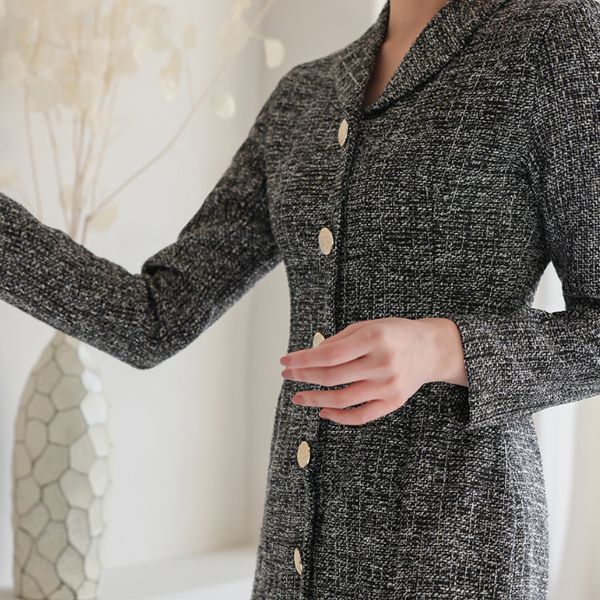闪亮 披巾领 粗呢 连衣裙