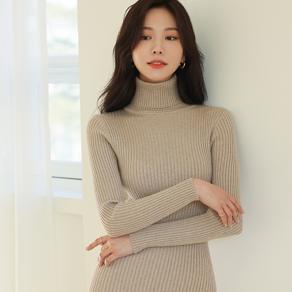 Glam line 条绒 高翻领 针织衫 连衣裙