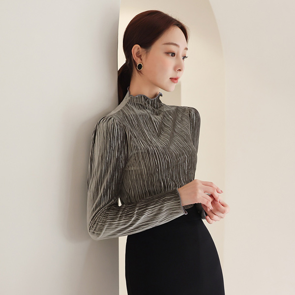 丝滑 丝绒 条绒 漏斗领 雪纺衫上衣 Ⅱ