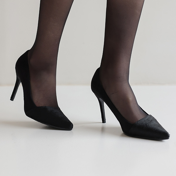 真 胎牛&翻毛皮 细高跟 高跟鞋