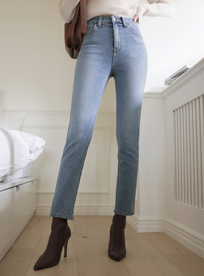 灯光 颜色 细密 스키니핏 牛仔色 裤子(衬里加绒)