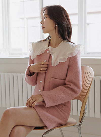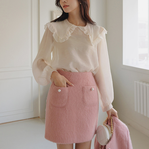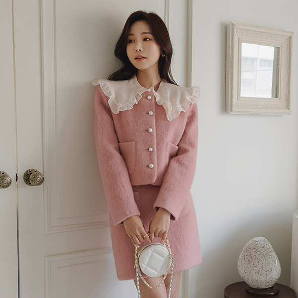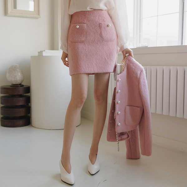 可爱 结子花式 珍珠 扣子 羊毛 裙子