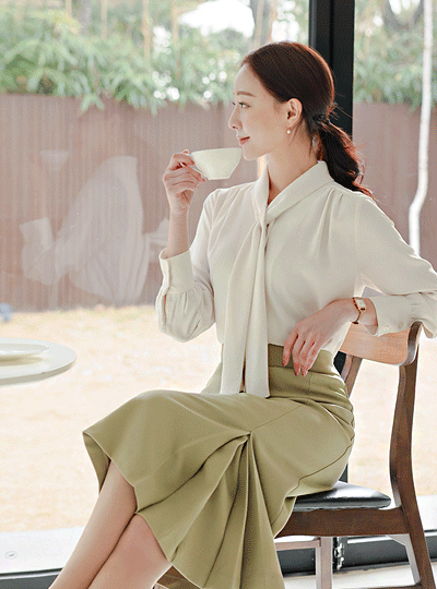结子花式 羊毛 荷叶边 夹克& 裙子 两件套 SET