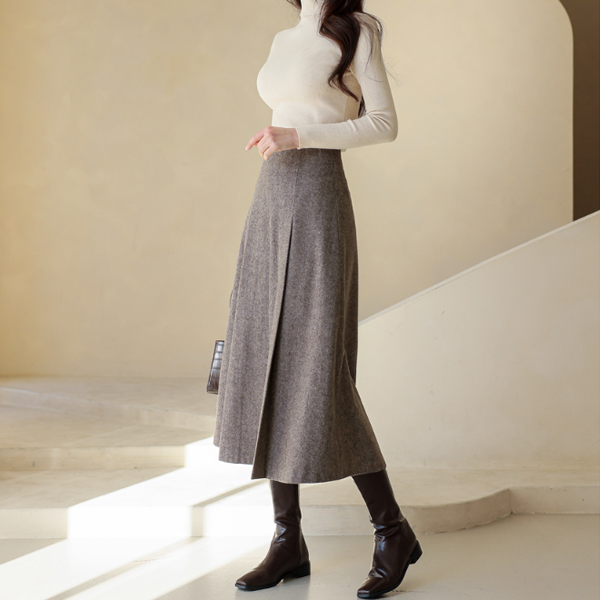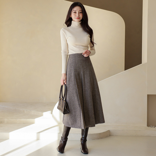 日常 条绒 弹力 高领 针织t恤