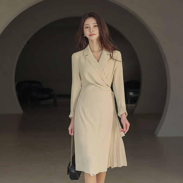 芬奇 褶皱 侧纽 褶边 交叉式连衣裙(spring) Ⅱ