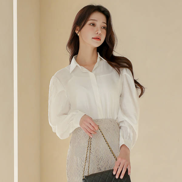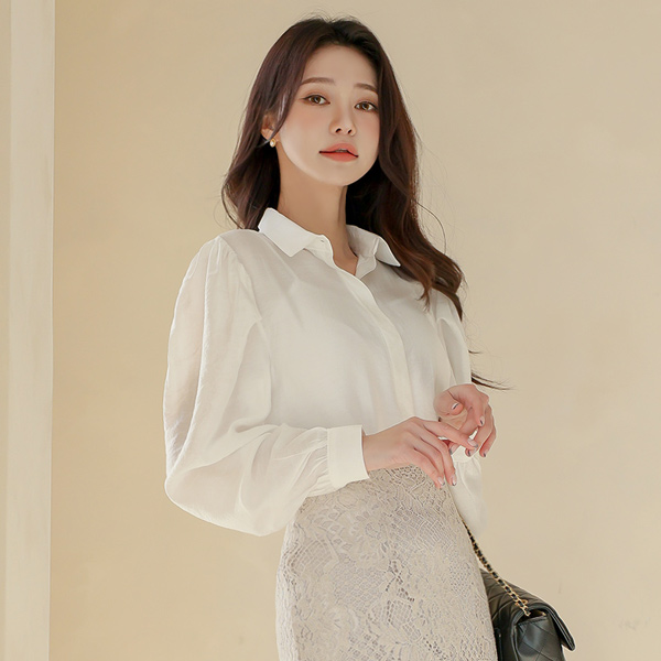 绸缎 透视 泡泡袖 隐藏 罩衫