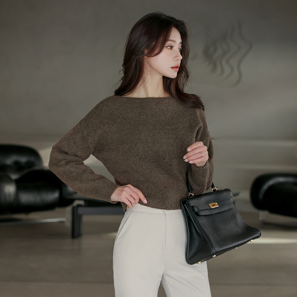 柔软的 7分裤 船形领 针织衫