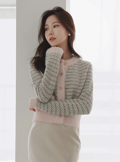 ODE 苗条 黄金 珍珠 粗呢 开衫