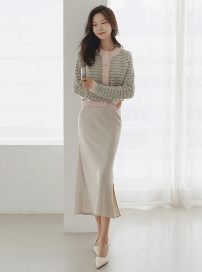 有光泽 绸缎 侧纽 深 开衩 裙子
