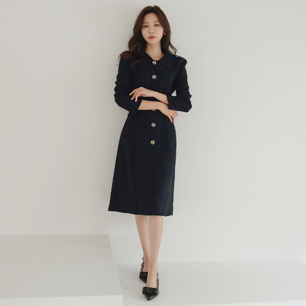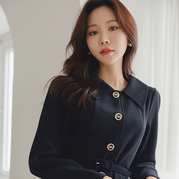 Romance 翻领 古典 黄金 腰带 连衣裙