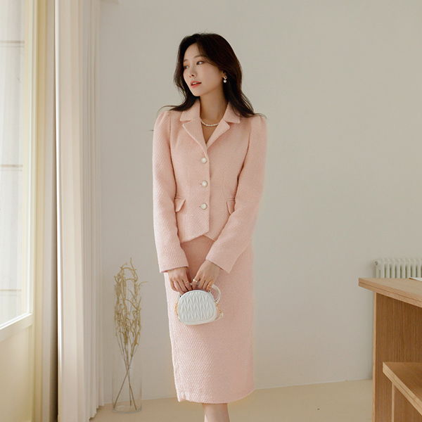甜蜜 Merry 珍珠 粗呢 Set-up 夹克