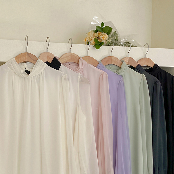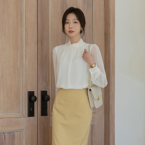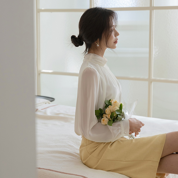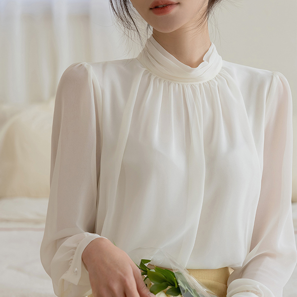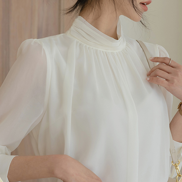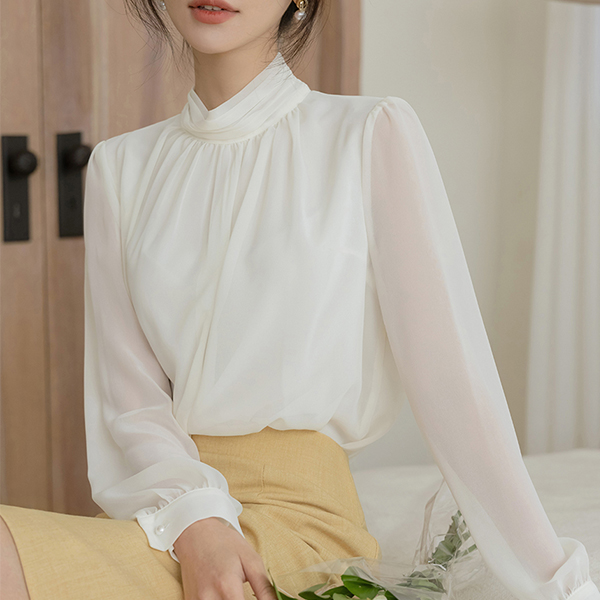 褶皱高领 二重 透视 罩衫(Spring) Ⅱ