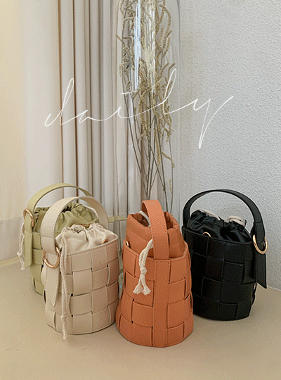 皮 编织的 圆柱体 水桶包