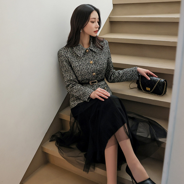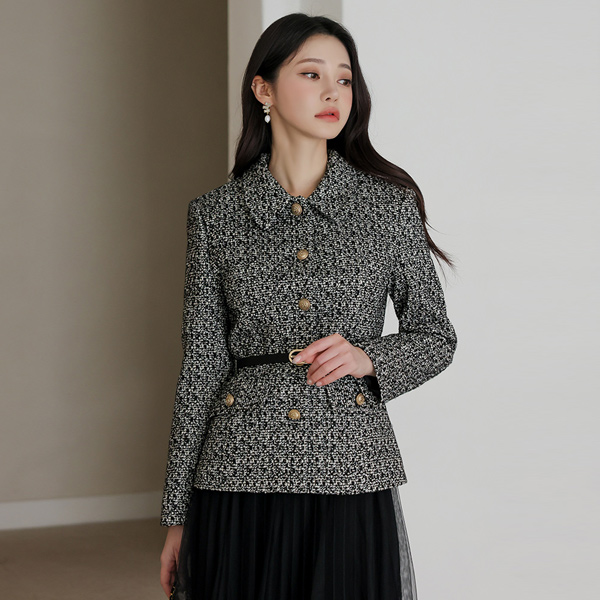 单领 黄金 扣子 粗呢 夹克