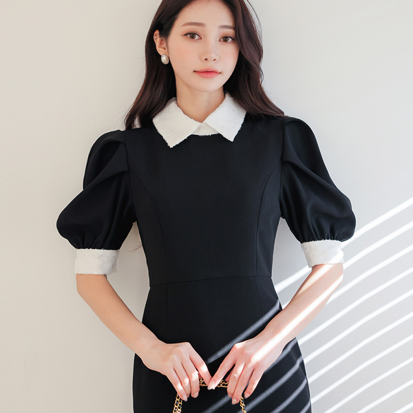 云朵 羽绒被 配色 浪漫 泡泡袖 连衣裙