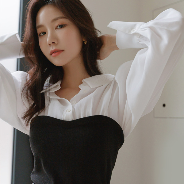 分层 条绒 针织衫 抹胸 炫酷 衬衫