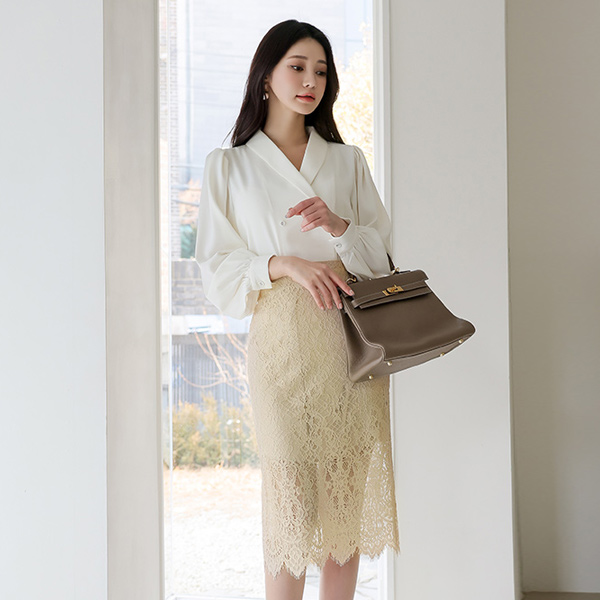 褶皱高领 二重 透视 罩衫(Spring) Ⅱ