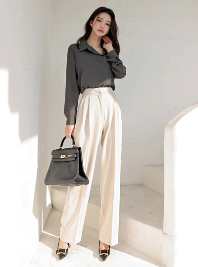 情调 双 细褶 弹力 宽松 宽松长裤(2 type)
