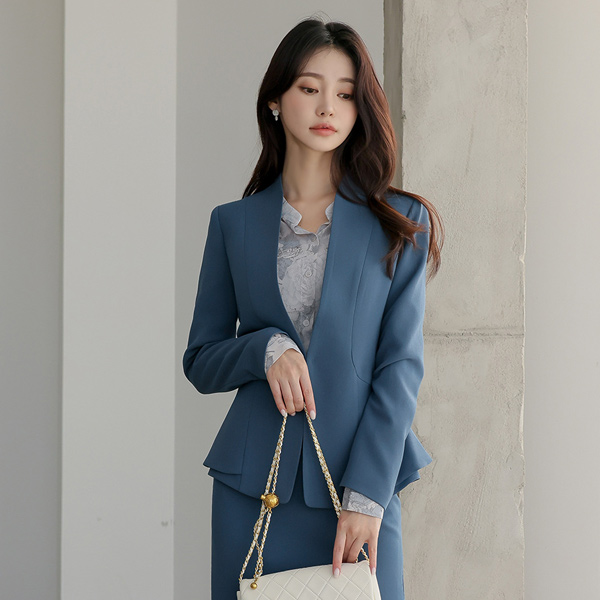 Blanc 波浪卷 无领 二重 荷叶边 夹克(spring)