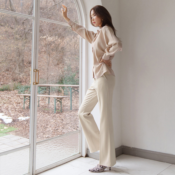 柔丝 侧纽 细褶 斯利姆 罩衫