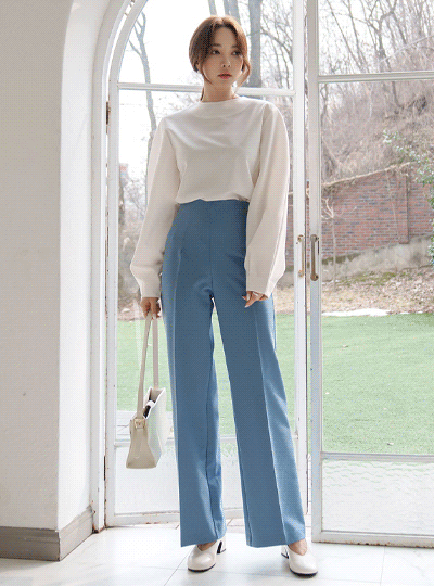 Coco 基本 侧纽 拉链 宽松 宽松长裤