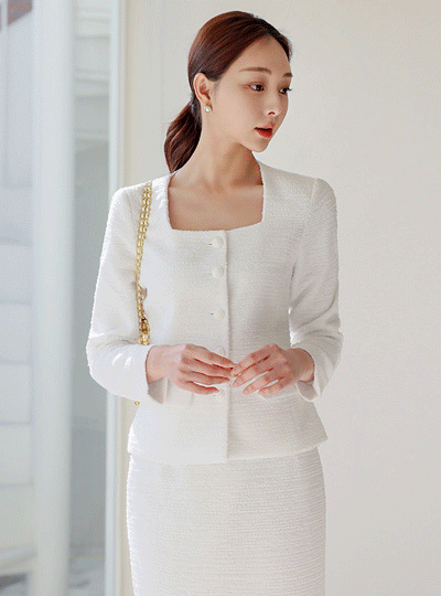 女性化的 方领 粗呢 夹克