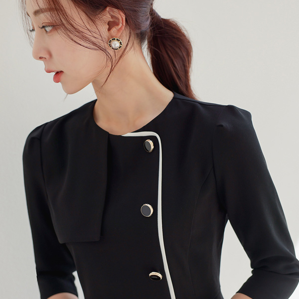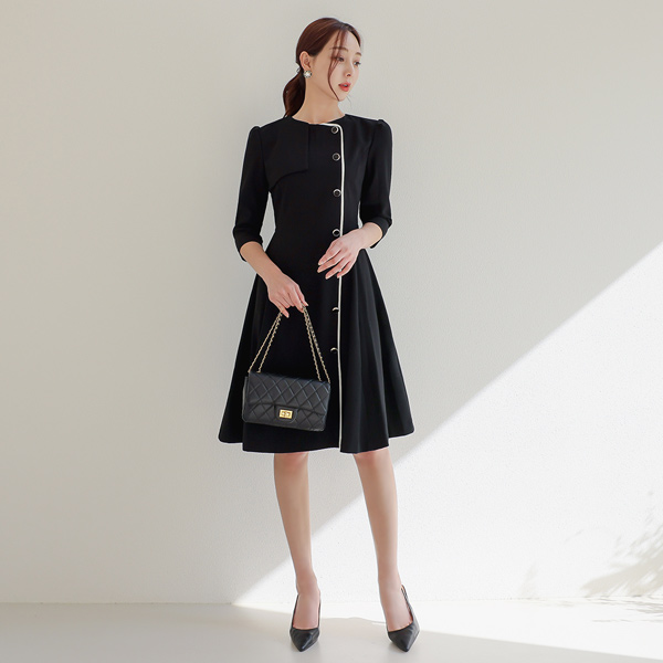 风衣 侧纽 扣子 喇叭 配色 连衣裙