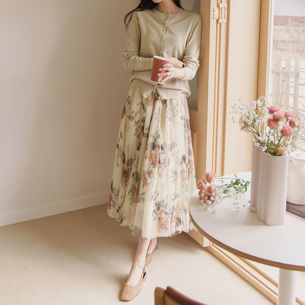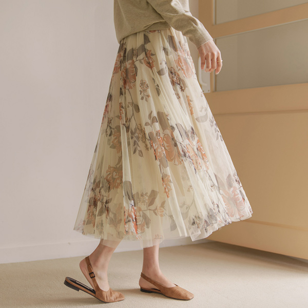 Coco 花纹 A字型 松紧带 薄纱 裙子