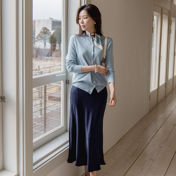 颜色 点缀 柔丝 圆领 针织衫 开衫