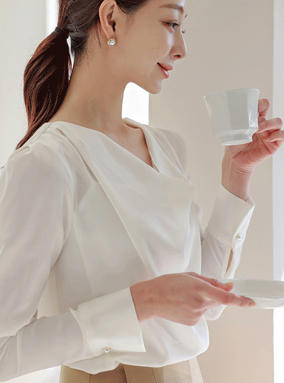 绸缎 悬垂式 堆领 罩衫